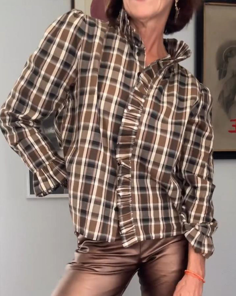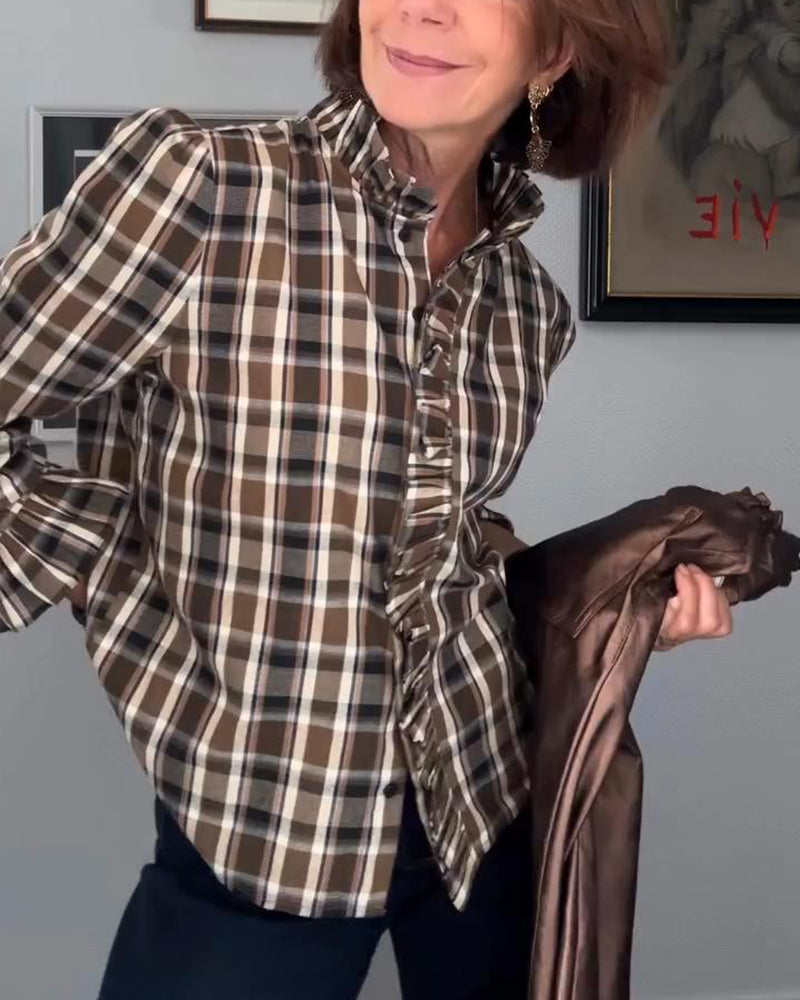 Modowa Sukienka Z Klapami I Kraciastym Wzorem