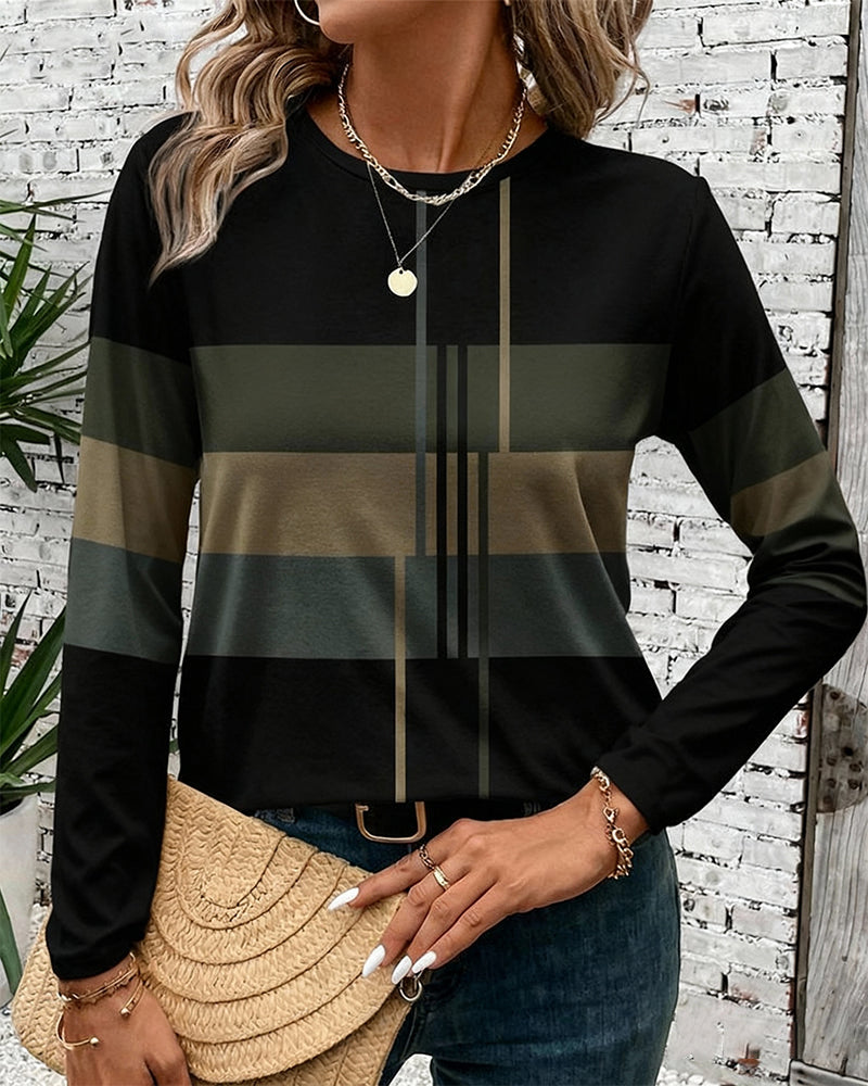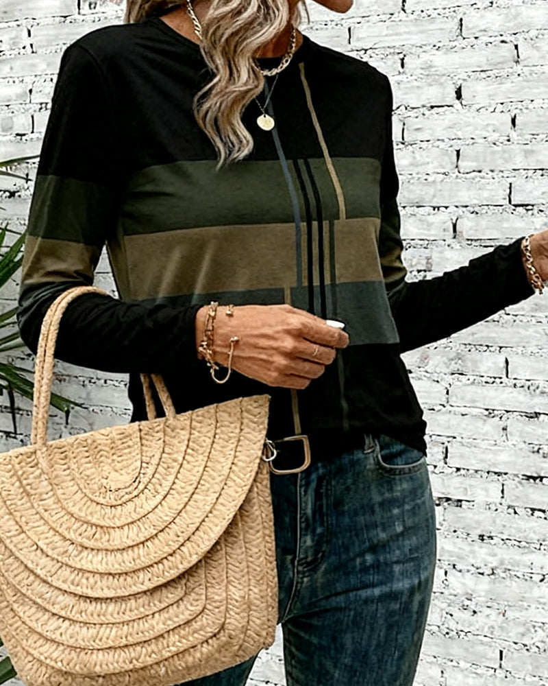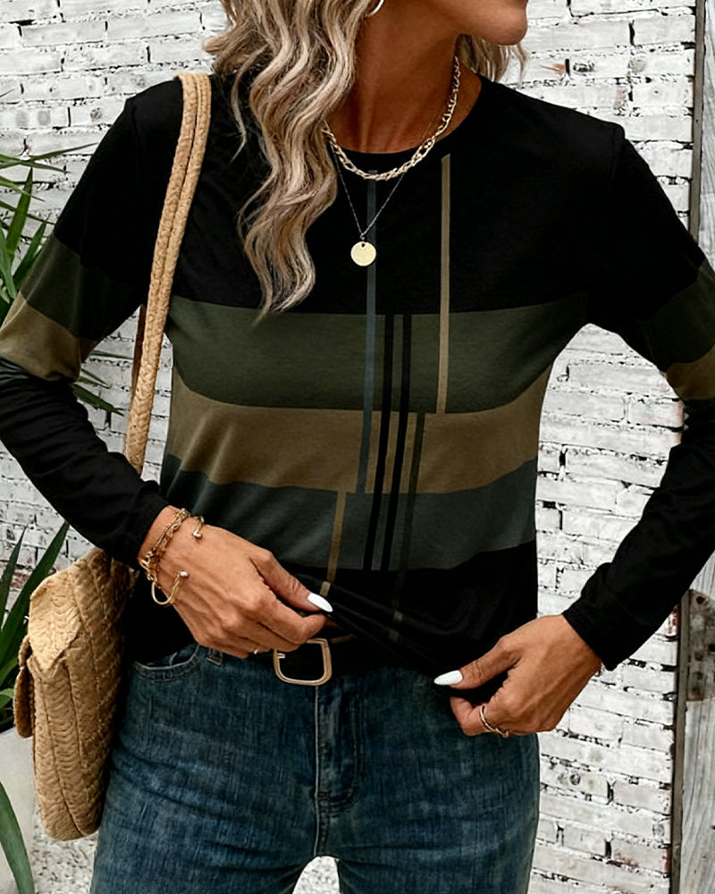 Top Z Wzorem Pasów, Stylą Casual I Długimi Rękawami