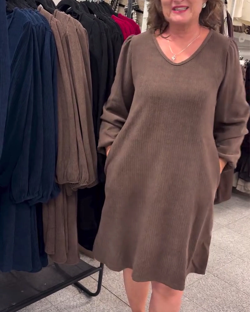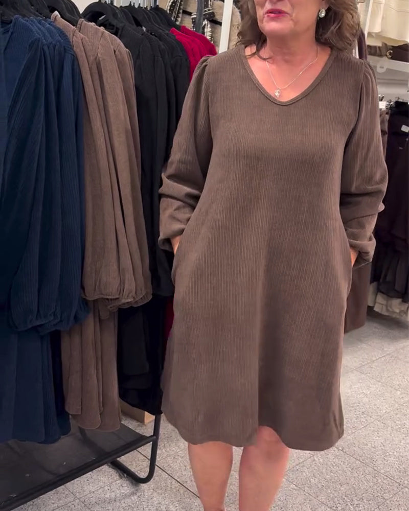SPECYFIKACJE: Styl: Nieformalny Materiał: Bawełna z domieszką Rodzaj Sukienki: Prosty Długość Sukienki: Do kolan Dekolt: Okrągły dekolt Wzór: Jednolity Kolor Rodzaj rękawa: Rękaw standardowy Długość rękawa: Długi rękaw Detale: Kieszeń Typ sylwetki: Regularny Pora roku: Wiosna,Jesień,Zima Okazja: Na co dzień Paczka zawiera: 1 x Sukienka TABELA ...