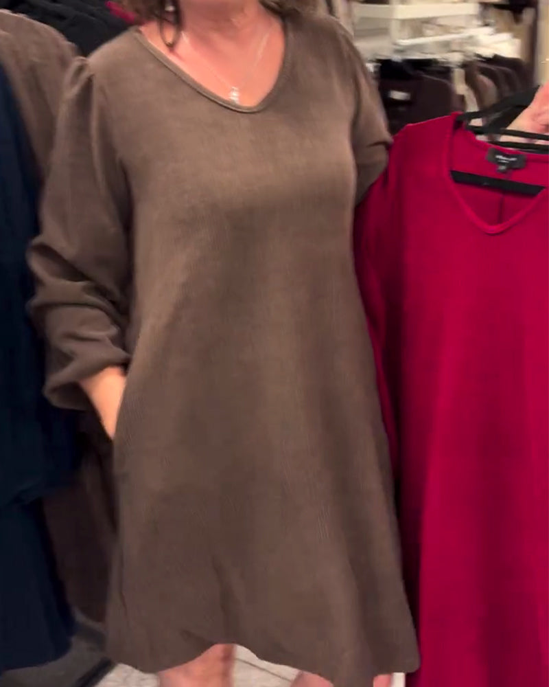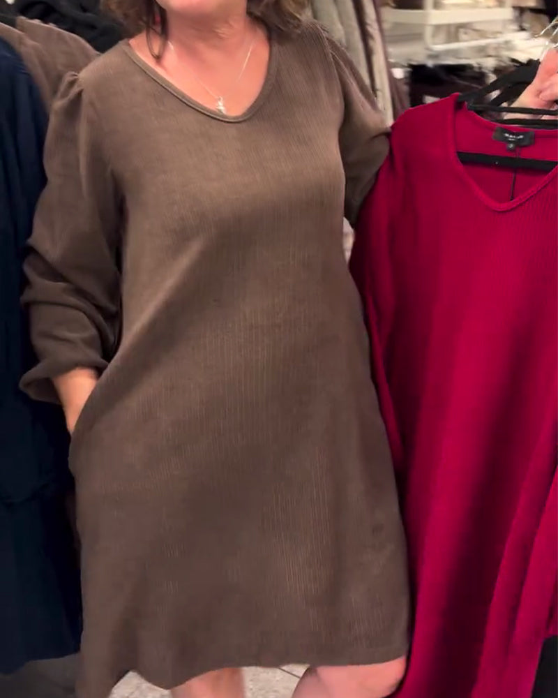Długorękawowa Luźna Sukienka Z Żebrowaniem