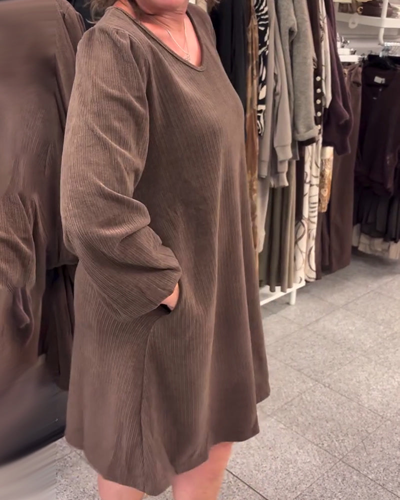 SPECYFIKACJE: Styl: Nieformalny Materiał: Bawełna z domieszką Rodzaj Sukienki: Prosty Długość Sukienki: Nad kolanem Dekolt: Okrągły dekolt Wzór: Jednolity Kolor Rodzaj rękawa: Rękaw standardowy Długość rękawa: Długi rękaw Detale: Kieszeń,Guziki Typ sylwetki: Regularny Pora roku: Jesień,Zima Okazja: Na co dzień Paczka zawiera: 1 x Sukienka TABE...