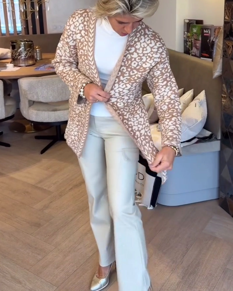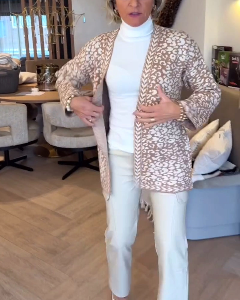 Luźna Bluza Z Pół-Zamkiem I Leopardzim Nadrukiem