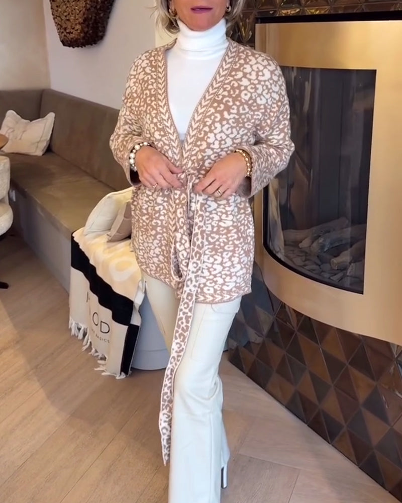 SPECYFIKACJE: Styl: Nieformalny Materiał: Dzianina Rodzaj Sukienki: Dopasowana Długość Sukienki: Nad kolanem Dekolt: W serek Wzór: Lampart Rodzaj rękawa: Rękaw standardowy Długość rękawa: Długi rękaw Detale: Marszczona,Troczek Typ sylwetki: Regularny Pora roku: Wiosna,Jesień Okazja: Na co dzień Paczka zawiera: 1 x Sukienka TABELA ROZMIARÓW (cm...