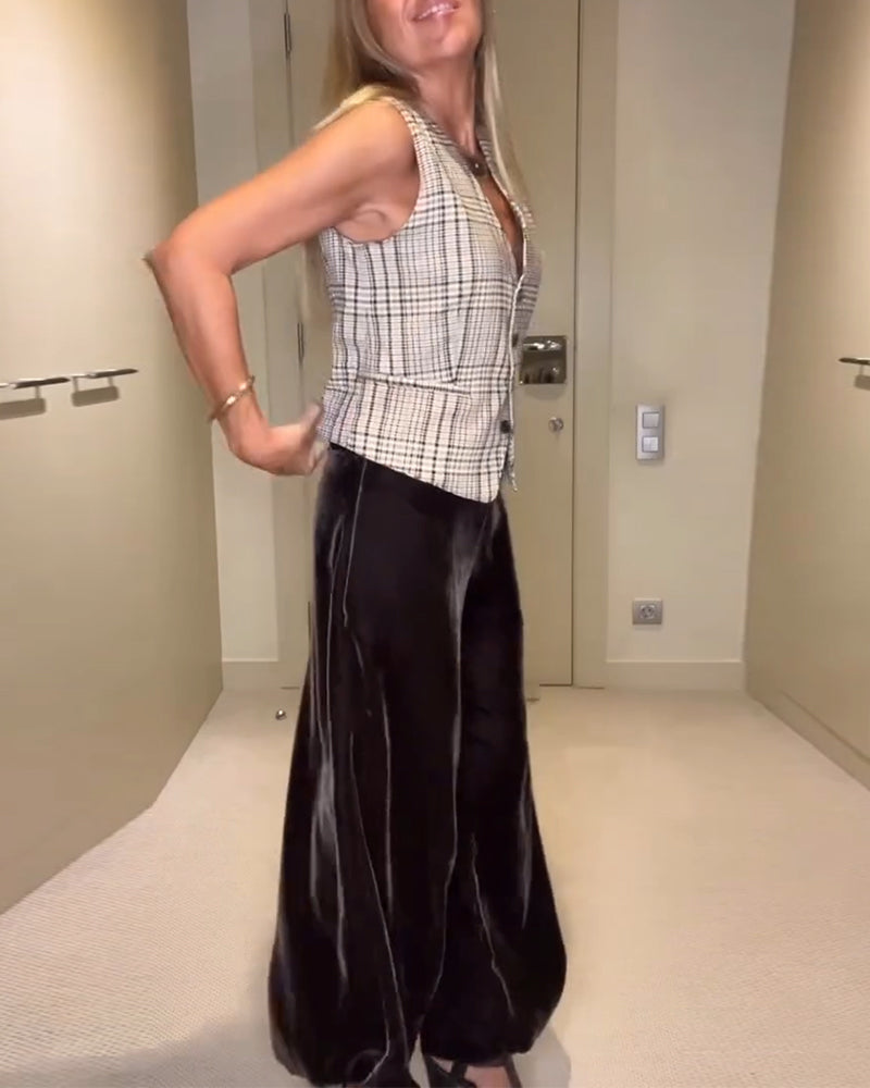 Modowa Sukienka Z Klapami I Kraciastym Wzorem
