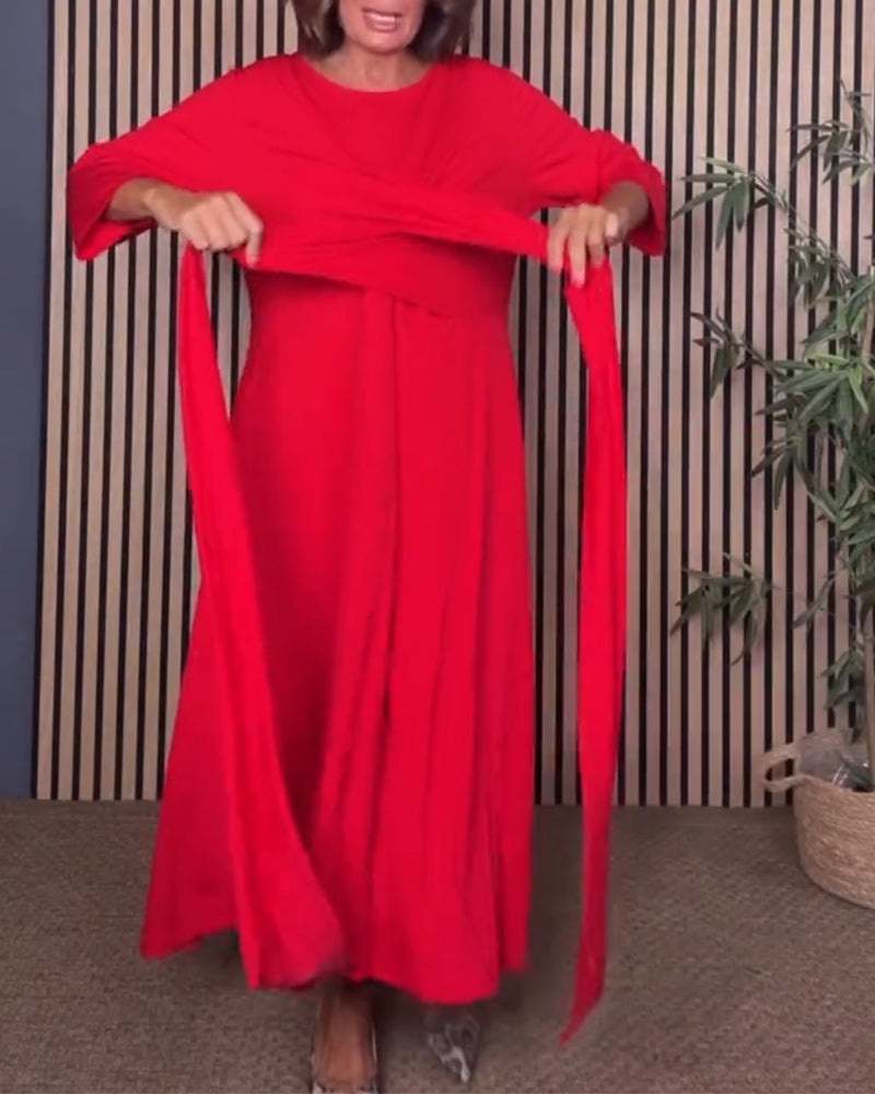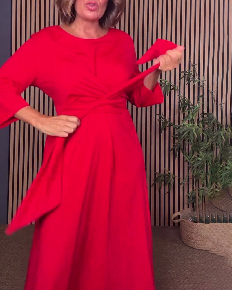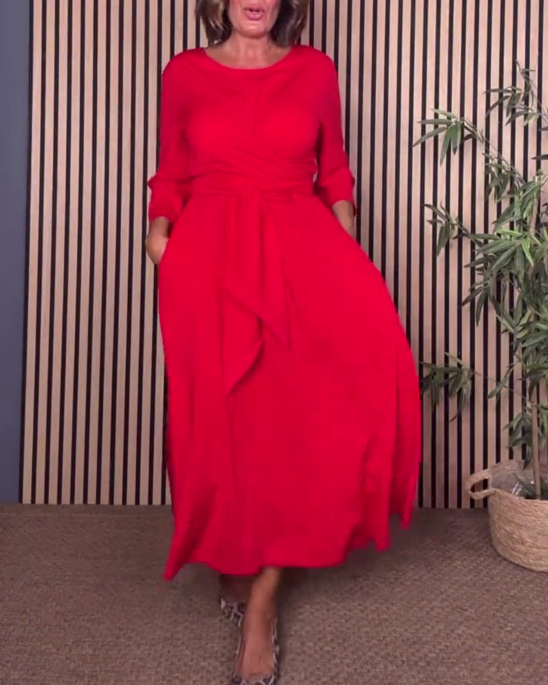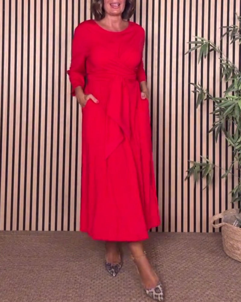 SPECYFIKACJE: Styl: Nieformalny Materiał: Bawełna z domieszką Rodzaj Sukienki: Trapezowa Długość Sukienki: Midi Dekolt: Okrągły dekolt Wzór: Jednolity Kolor Rodzaj rękawa: Rękaw standardowy Długość rękawa: Rękaw 3/4 Detale: Sznurowane Typ sylwetki: Regularny Pora roku: Wiosna,Jesień Okazja: Na co dzień Paczka zawiera: 1 x Sukienka TABELA ROZMI...
