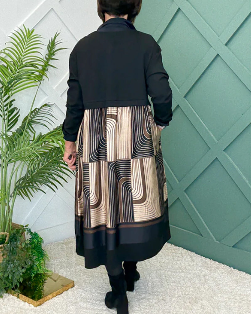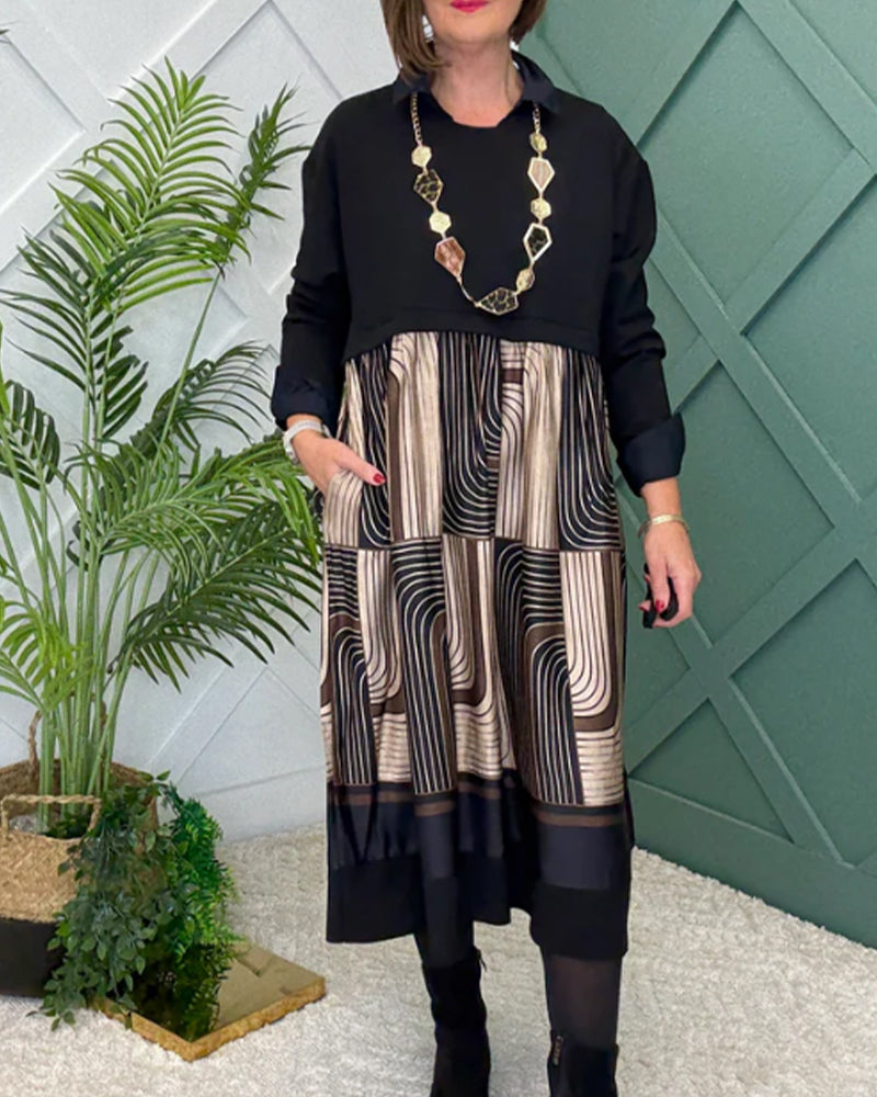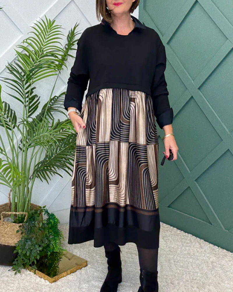 Sukienka casualowa z falowanym wzorem, dopasowana