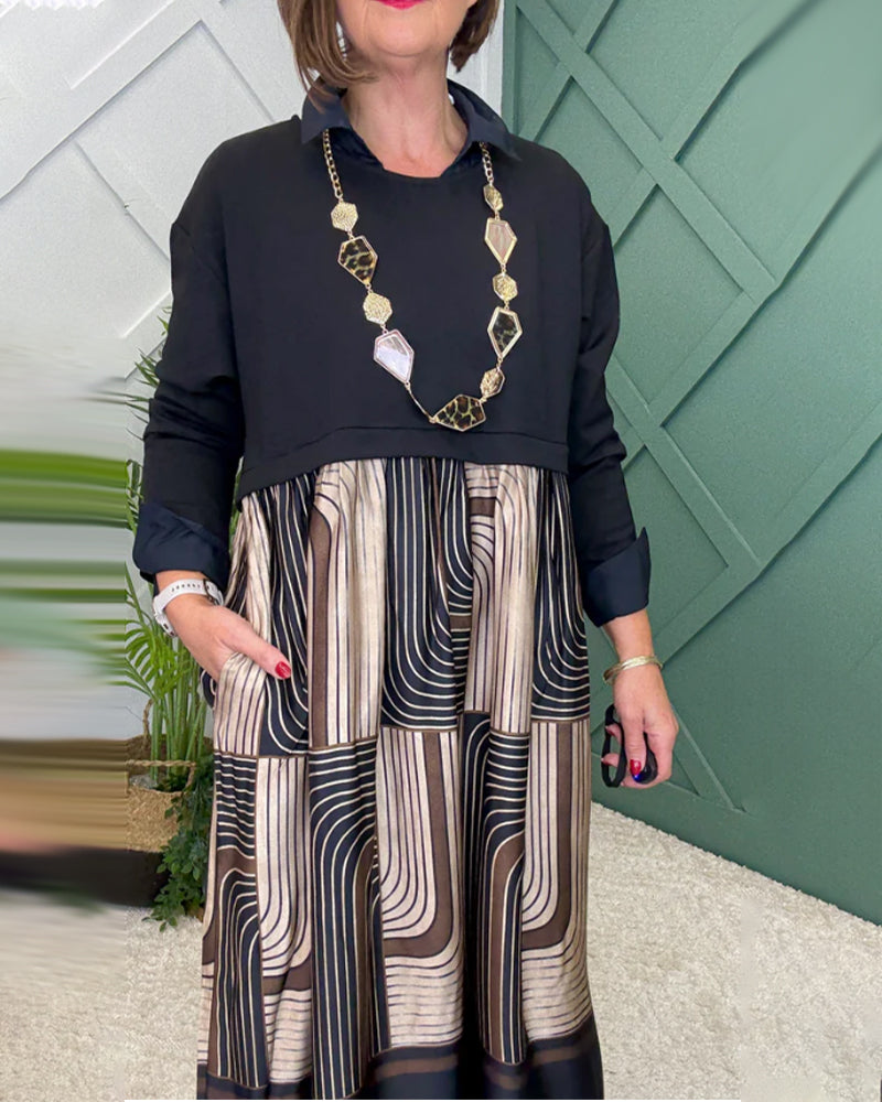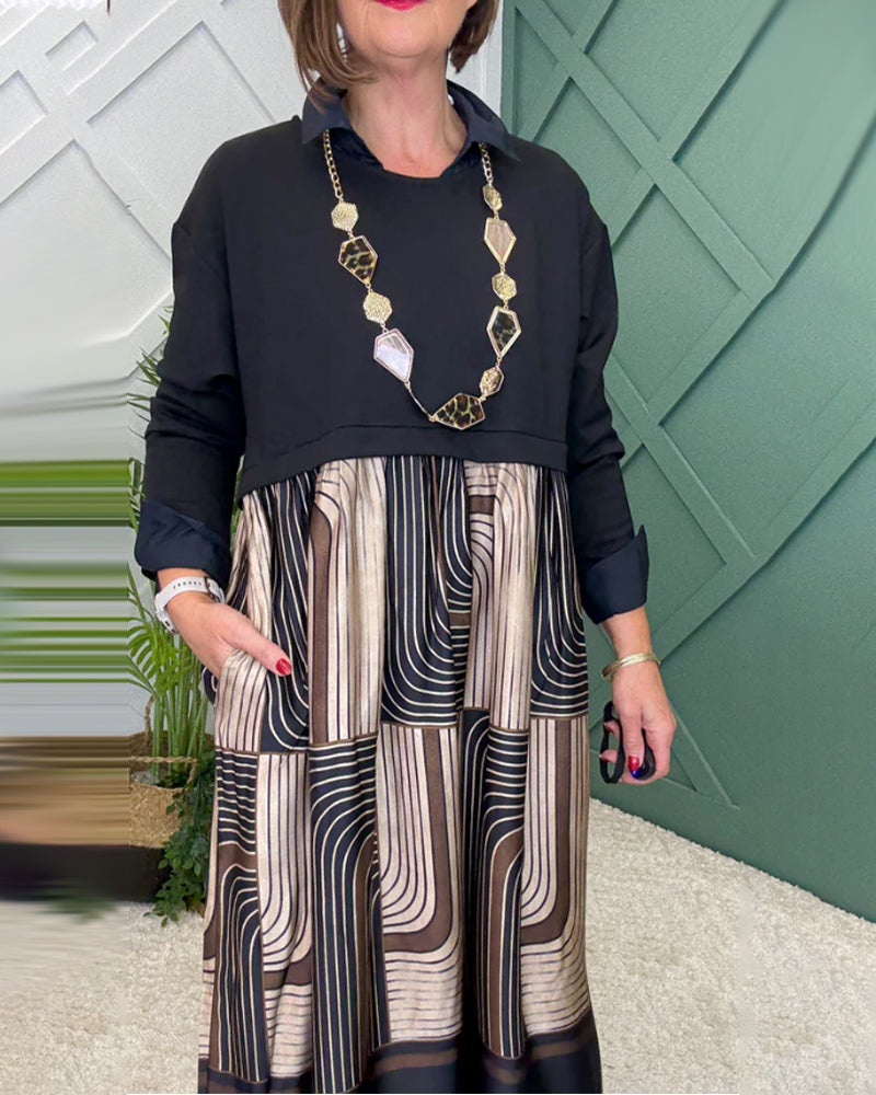 SPECYFIKACJE: Styl: Nieformalny Materiał: Bawełna z domieszką Rodzaj Sukienki: Prosty Długość Sukienki: Do kolan Dekolt: Drapowany Kołnierz Wzór: Cekin Rodzaj rękawa: Rękaw standardowy Długość rękawa: Długi rękaw Detale: Patchwork Typ sylwetki: Regularny Pora roku: Wiosna,Jesień,Zima Okazja: Na co dzień Paczka zawiera: 1 x Sukienka TABELA ROZM...