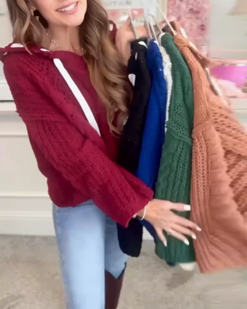 Długorękawowa Luźna Casualowa Sukienka Z Kapturem