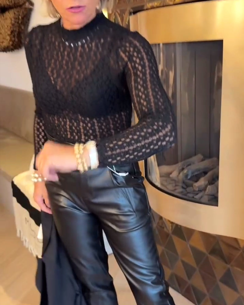 Jednokolorowy Długorękawowy Pullover Z Okrągłym Dekoltem