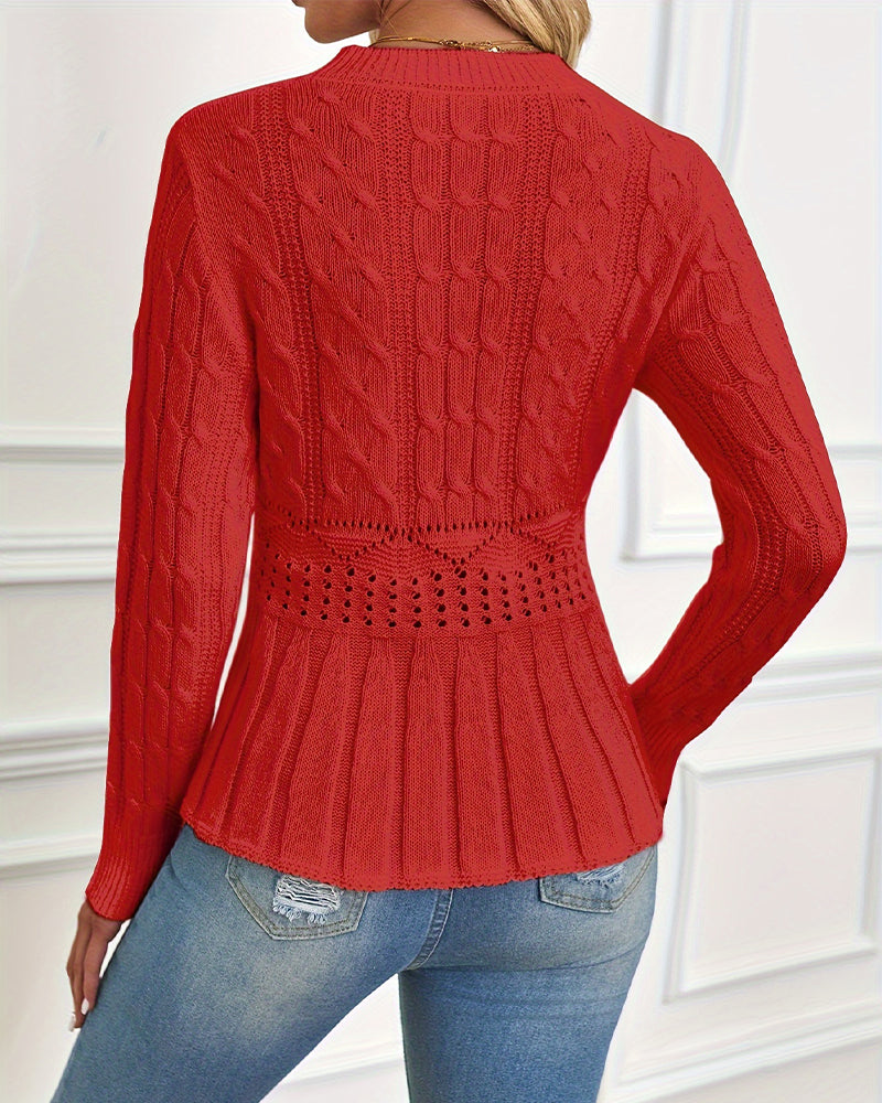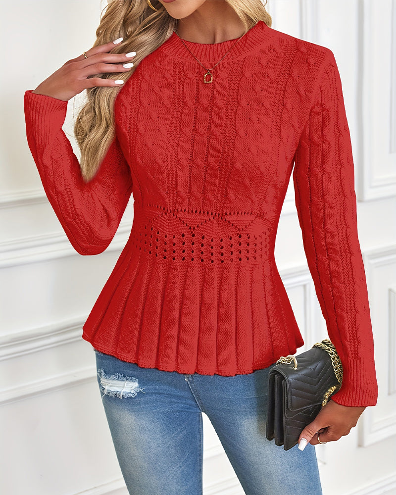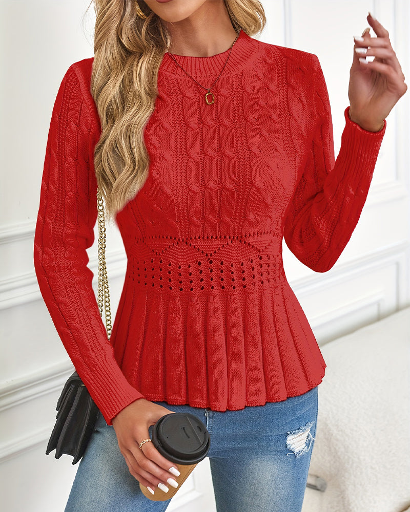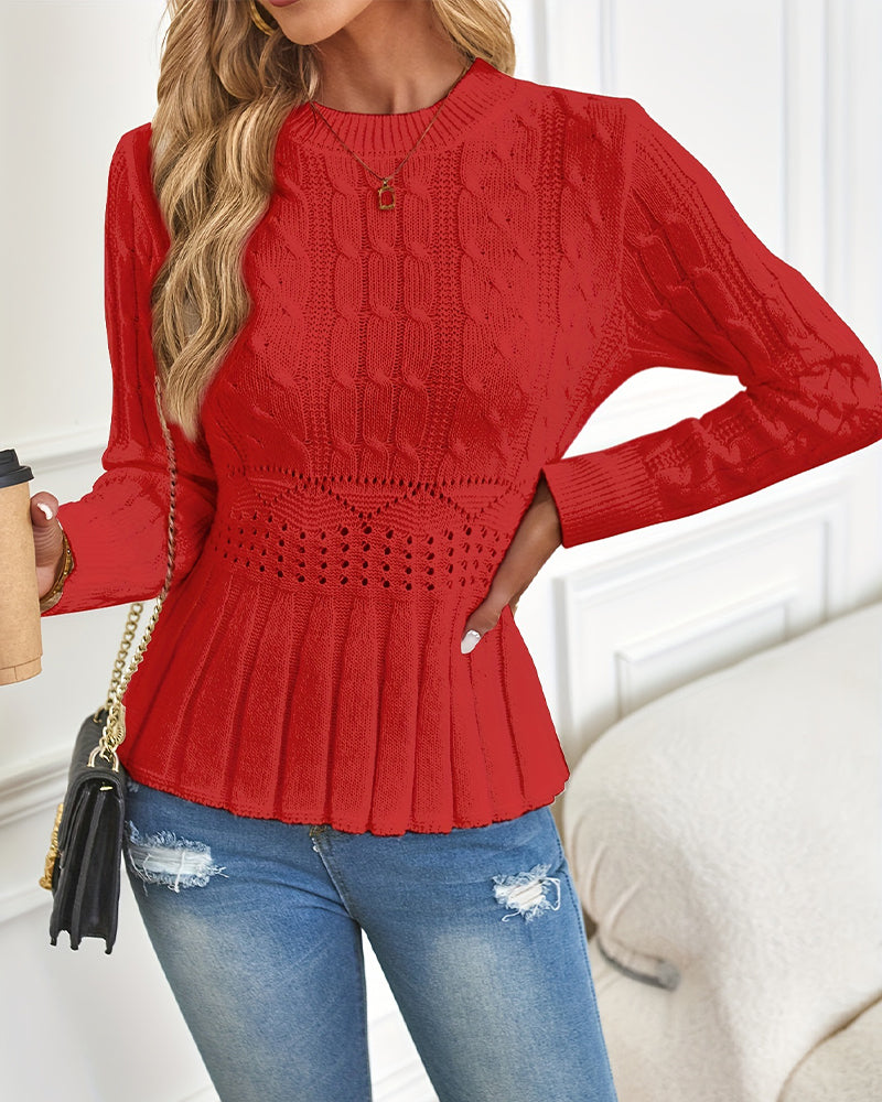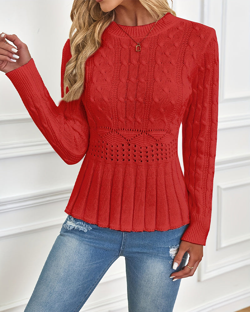 Jednokolorowy Długorękawowy Pullover Z Okrągłym Dekoltem