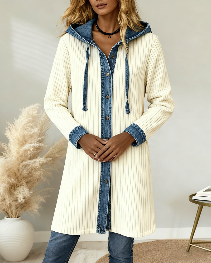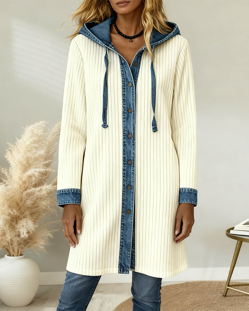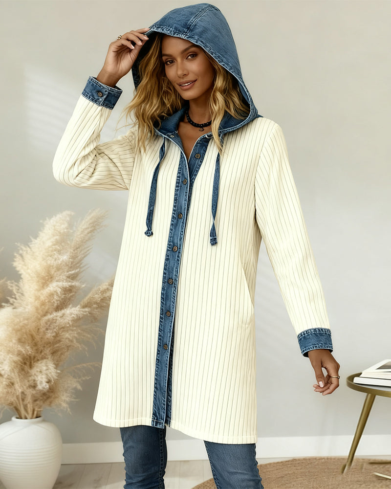 Płaszcz Kołnierz Zamek Denim Patchwork