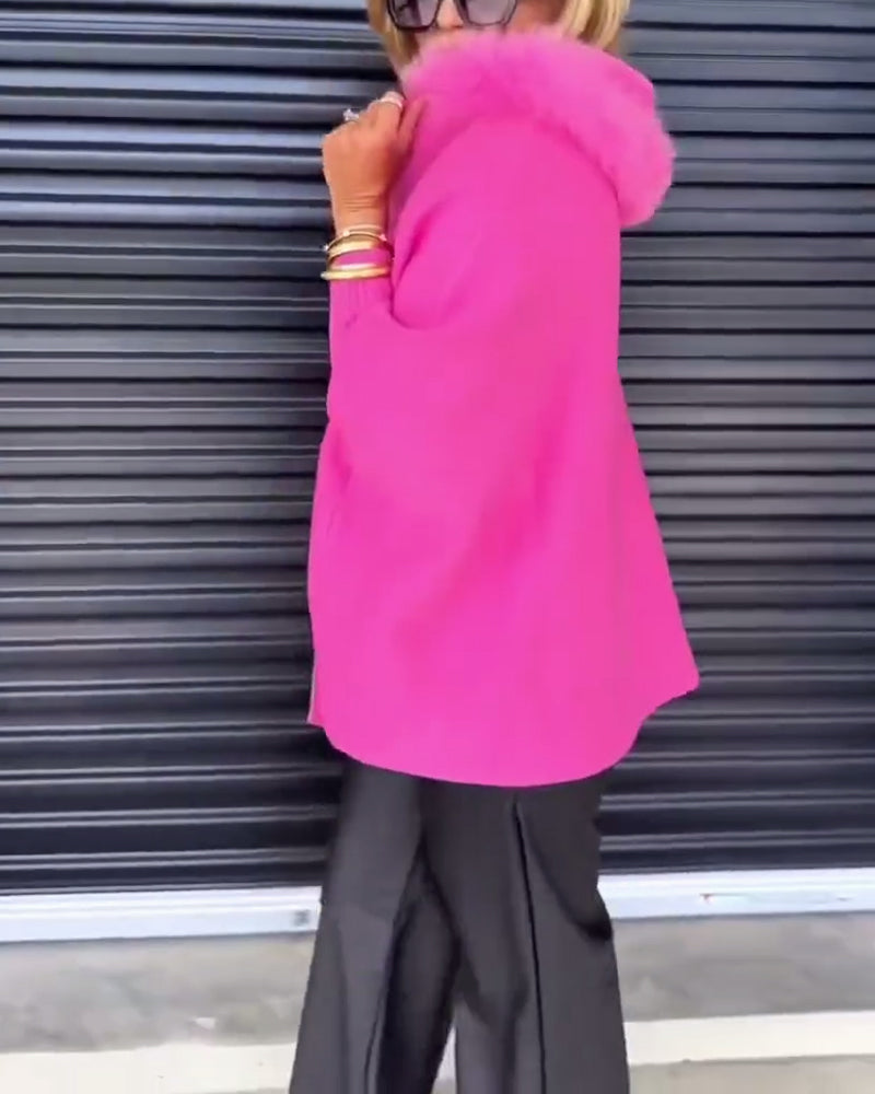 Luźny, jednolity kolor, gruby płaszcz z klapą, guzik i długi rękaw