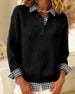 Luźny Sweter Z Patchworkiem W Jednolitym Kolorze
