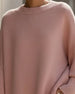 Luźny jednokolorowy swobodny sweter z okrągłym dekoltem