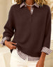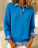 Jednokolorowy Pullover Z Kraciastym Patchworkiem