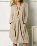 SPECYFIKACJE: Styl: Nieformalny, Biznesowy Materiał: Len, Bawełna i len Rodzaj Sukienki: Prosty Długośc Sukienki: Do kolan Dekolt: Okrągły dekolt Wzór: Jednolity Kolor Sleeve Type: Rękaw standardowy Długość rękawa: Długi rękaw Detale: Kieszeń Typ sylwetki: Luźny krój Pora roku: Wiosna, Jesień Okazja: Na co dzień, Praca Paczka zawiera: 1 x Suk...