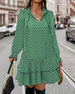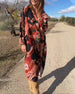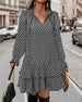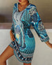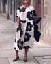 SPECYFIKACJA: Styl: Nieformalny, Urlop Materiał: 5% Spandex, 95% Poliester Rodzaj Sukienki: Prosty Długość Sukienki: Midi Dekolt: Dekolt Kopertowy Wzór: Nadruk/Wzór Typ rękawa: Rękaw standardowy Długość rękawa: Długi rękaw Detale: Rozcięcie Typ sylwetki: Regularny Pora roku: Wiosna, Lato, Jesień Okazja: Na co dzień, Wakacje Paczka zawiera: 1 ...