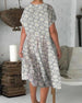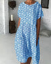 SPECYFIKACJA: Styl: Nieformalny Materiał: 100% Poliester Rodzaj Sukienki: Prosty Długość Sukienki: Midi Dekolt: Okrągły dekolt Wzór: Kwiatowy Rodzaj rękawa: Rękaw standardowy Długość rękawa: Krótki rękaw Detale: Patchwork, Kieszeń Typ sylwetki: Regularny Pora roku: Lato Okazja: Na co dzień Paczka zawiera: 1 x Sukienka TABELA ROZMIARÓW (cm)...