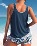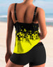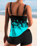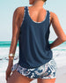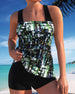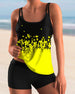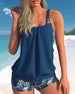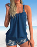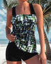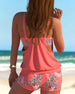 SPECYFIKACJE: Styl: Urlop, Elegancki Materiał: 15% Spandex,85% Poliester Okazja: Wakacje Dekolt: Karo Wzór: Kwiatowy, Wzór w liście, Nadruk/Wzór Długość rękawa: Bez rękawów Rodzaj koszulki: Tankini Rodzaj biustonosza: Biustonosz nieusztywniany, biustonosz miękki Rodzaj dołu: Szorty Typ sylwetki: Regularny Detale: Marszczona Paczka zawiera: 1...