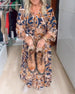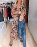 SPECYFIKACJA: Styl: Nieformalny, Urlop Materiał: 95% Poliester, 5% Spandex Rodzaj Sukienki: Trapezowa Długość Sukienki: Maxi Dekolt: W serek Wzór: Nadruk/Wzór Typ rękawa: Rękaw rozkloszowany Długość rękawa: Rękaw 3/4 Typ sylwetki: Regularny Pora roku: Wiosna, Lato, Jesień Okazja: Na co dzień, Wakacje Paczka zawiera: 1 x Sukienka TABELA ROZ...