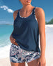 SPECYFIKACJA: Styl: Urlop Materiał: Bawełna z domieszką Okazja: Wakacje Dekolt: Łódka Wzór: Nadruk/Wzór Długość rękawa: Bez rękawów Rodzaj koszulki: Tankini Rodzaj biustonosza: Biustonosz nieusztywniany, biustonosz miękki Rodzaj dołu: Szorty Typ sylwetki: Szczupły Pora roku: Lato Detale: Węzeł Paczka zawiera: 1 x Tankini TABELA ROZMIARÓW (c...
