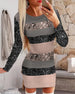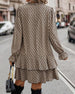 SPECYFIKACJA: Styl: Nieformalny Materiał: Spandex, Poliester Rodzaj Sukienki: Trapezowa Długość Sukienki: Do kolan Dekolt: W serek Wzór: Nadruk/Wzór Typ rękawa: Rękaw standardowy Długość rękawa: Długi rękaw Detale: Troczek Typ sylwetki: Regularny Pora roku: Wiosna, Lato Okazja: Na co dzień Paczka zawiera: 1 x Sukienka TABELA ROZMIARÓW (cm)...