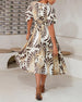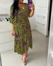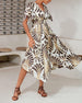 SPECYFIKACJA: Styl: Nieformalny Materiał: 97% Poliester, 3% Spandex Rodzaj Sukienki: Trapezowa Długość Sukienki: Midi Dekolt: W serek Wzór: Nadruk/Wzór Rodzaj rękawa: Rękaw standardowy Długość rękawa: Rękaw 3/4 Detale: Sznurowane, Marszczona Typ sylwetki: Regularny Pora roku: Wiosna, Lato Okazja: Na co dzień Paczka zawiera: 1 x Sukienka TA...