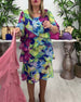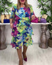 Sukienka na co dzień z kolorowym kwiatowym nadrukiem i rękawami dzwonkowymi