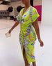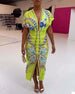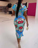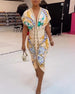 SPECYFIKACJA: Styl: Seksowny Materiał: 95% Bawełna, 5% Poliester Rodzaj Sukienki: Dopasowana Długość Sukienki: Midi Dekolt: W serek Wzór: Nadruk/Wzór Rodzaj rękawa: Rękaw standardowy Długość rękawa: Krótki rękaw Detale: Rozcięcie, Marszczona Typ sylwetki: Szczupły Pora roku: Lato Okazja: Na co dzień Paczka zawiera: 1 x Sukienka TABELA ROZM...