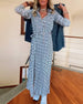 SPECYFIKACJA: Styl: Nieformalny, Biznesowy Materiał: Bawełna z domieszką Rodzaj Sukienki: Koszula Długość Sukienki: Maxi Dekolt: Dekolt Kopertowy Wzór: Nadruk/Wzór Rodzaj rękawa: Rękaw standardowy Długość rękawa: Długi rękaw Detale: Guziki, Rozcięcie Typ sylwetki: Regularny Pora roku: Wiosna, Lato, Jesień Okazja: Na co dzień, Praca Paczka zaw...