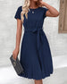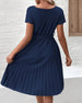 SPECYFIKACJA: Styl: Elegancki, Biznesowy Materiał: Bawełna z domieszką Rodzaj Sukienki: Trapezowa Długość Sukienki: Do kolan Dekolt: Okrągły dekolt Wzór: Jednolity Kolor Rodzaj rękawa: Rękaw standardowy Długość rękawa: Krótki rękaw Detale: Sznurowane, Marszczona Typ sylwetki: Regularny Pora roku: Wiosna, Lato, Jesień Okazja: Na co dzień, Prac...