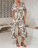 SPECYFIKACJA: Styl: Nieformalny Materiał: Bawełna z domieszką Rodzaj Sukienki: Prosty Długość Sukienki: Maxi Dekolt: Dekolt Kopertowy Wzór: Nadruk/Wzór Rodzaj rękawa: Rękaw standardowy Długość rękawa: Rękaw 1/2 Typ sylwetki: Luźny krój Pora roku: Wiosna, Lato, Jesień Okazja: Na co dzień Paczka zawiera: 1 x Sukienka TABELA ROZMIARÓW (cm) ...