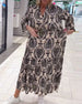 CECHY Rękawy dzwony: Eleganckie rękawy dzwony dodają odrobinę dramatyzmu i szyku, podkreślając ogólny urok sukienki w stylu vintage. Sukienka z szerokim rąbkiem: Dzięki szerokiemu, lejącemu rąbkowi ta sukienka tworzy piękną sylwetkę, która jest zarówno pełna wdzięku, jak i przyciąga wzrok. Nadruki w stylu retro: ozdobiona ponadczasowymi nadruka...