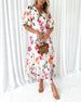 Stylowa sukienka z krótkim rękawem i kwiatowym nadrukiem