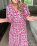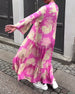 Luźna sukienka z nadrukiem rękawami dzwonkowymi i dekoltem w kształcie litery V