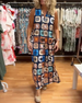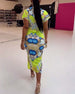 Sukienka z geometrycznym nadrukiem i rozcięciem