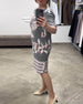 Sukienka z długim rozcięciem i kontrastowym nadrukiem