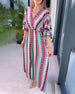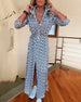 SPECYFIKACJA: Styl: Nieformalny Materiał: Bawełna z domieszką Rodzaj Sukienki: Trapezowa Długość Sukienki: Maxi Dekolt: Dekolt Kopertowy Wzór: Wzór geometryczny Rodzaj rękawa: Rękaw standardowy Długość rękawa: Długi rękaw Detale: Sznurowane, Rozcięcie Typ sylwetki: Regularny Pora roku: Wiosna, Lato Okazja: Na co dzień Paczka zawiera: 1 x Suki...