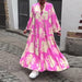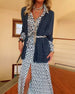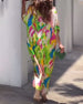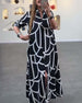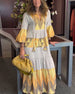 SPECYFIKACJA: Styl: Nieformalny Materiał: 100% Poliester Rodzaj Sukienki: Trapezowa Długość Sukienki: Maxi Dekolt: W serek Wzór: Nadruk/Wzór Rodzaj rękawa: Rękaw rozkloszowany Długość rękawa: Długi rękaw Detale: Patchwork, Sznurowane Typ sylwetki: Regularny Pora roku: Wiosna, Lato Okazja: Na co dzień Paczka zawiera: 1 x Sukienka TABELA ROZ...