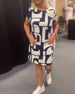 SPECYFIKACJA: Styl: Elegancki ,Biznesowy Materiał: Bawełna z domieszką Rodzaj Sukienki: Prosty Długość Sukienki: Do kolan Dekolt: Okrągły dekolt Wzór: Wzór geometryczny Rodzaj rękawa: Rękaw standardowy Długość rękawa: Krótki rękaw Detale: Kieszeń Typ sylwetki: Regularny Pora roku: Wiosna, Lato, Jesień Okazja: Na co dzień, Praca Paczka zawiera...