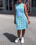SPECYFIKACJA: Styl: Elegancki, Imprezowy Materiał: Bawełna z domieszką Rodzaj Sukienki: Bokserka Długość Sukienki: Nad kolanem Dekolt: W serek Wzór: Wzór geometryczny Długość rękawa: Bez rękawów Detale: Guziki, Marszczona Typ sylwetki: Regularny Pora roku: Lato Okazja: Na co dzień, Wieczorne wyjście Paczka zawiera: 1 x Sukienka TABELA ROZM...