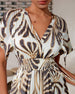 Sukienka z głębokim dekoltem w kształcie litery V i nadrukiem w talii