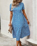 SPECYFIKACJE: Styl: Nieformalny, Urlop, Cottagecore Materiał: Szyfon Rodzaj Sukienki: Trapezowa Długość Sukienki: Midi Dekolt: Okrągły dekolt Wzór: Kwiatowy Sleeve Type: Rękaw z falbanką, Bufiasty rękaw Długość rękawa: Krótki rękaw Detale: Falbanka Typ sylwetki: Regularny Pora roku: Lato Okazja: Na co dzień, Wakacje Paczka zawiera: 1 x Sukien...