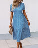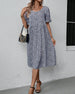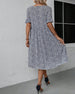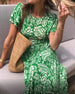 SPECYFIKACJE: Styl: Nieformalny, Urlop Materiał: 3% Spandex, 97% Poliester Rodzaj Sukienki: Trapezowa Długość Sukienki: Midi Dekolt: Okrągły dekolt Wzór: Nadruk/Wzór Rodzaj rękawa: Rękaw z falbanką Długość rękawa: Krótki rękaw Typ sylwetki: Regularny Pora roku: Wiosna, Lato, Jesień Okazja: Na co dzień, Wakacje Paczka zawiera: 1 x Sukienka ...
