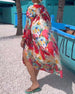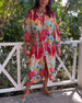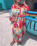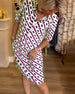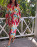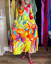 Sukienka w kolorowe nadruki z rozcięciami