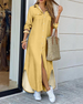 SPECYFIKACJE: Styl: Nieformalny Materiał: Bawełna, Bawełna z domieszką Rodzaj Sukienki: Koszula Długość Sukienki: Midi Dekolt: Kołnierz koszuli Wzór: Jednolity Kolor Sleeve Type: Rękaw standardowy Długość rękawa: Długi rękaw Detale: Kieszeń, Guziki, Rozcięcie Typ sylwetki: Regularny Pora roku: Wiosna, Jesień Okazja: Na co dzień Paczka zawiera...