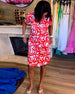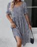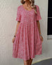 SPECYFIKACJA: Styl: Nieformalny, Urlop Materiał: Bawełna z domieszką Rodzaj Sukienki: Prosty Długość Sukienki: Midi Dekolt: W serek Wzór: Kwiatowy, Nadruk/Wzór Typ rękawa: Rękaw standardowy Długość rękawa: Krótki rękaw Detale: Marszczona Typ sylwetki: Regularny Pora roku: Wiosna, Lato, Jesień Okazja: Na co dzień, Wakacje Paczka zawiera: 1 x S...