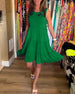 Elegancka sukienka w kształcie liścia z głębokim bufiastym rękawem i dekoltem w kształcie litery A