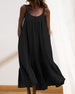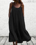 SPECYFIKACJE: Styl: Nieformalny, Urlop Materiał: Bawełna z domieszką, Poliester Rodzaj Sukienki: Podkoszulka na ramiączka Długość Sukienki: Midi Dekolt: Cienkie ramiączka Wzór: Jednolity Kolor Długość rękawa: Bez rękawów Detale: Falbanka Typ sylwetki: Luźny krój Pora roku: Wiosna, Lato, Jesień Okazja: Na co dzień, Wakacje Paczka zawiera: 1 x ...