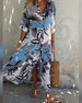 SPECYFIKACJA: Styl: Nieformalny, Urlop, Szykowny Materiał: 5% Spandex, 95% Poliester Rodzaj Sukienki: Trapezowa Długość Sukienki: Maxi Dekolt: W serek Wzór: Nadruk/Wzór Rodzaj rękawa: Rękaw rozkloszowany Długość rękawa: Długi rękaw Typ sylwetki: Luźny krój Pora roku: Wiosna, Lato, Jesień Okazja: Na co dzień, Wakacje Paczka zawiera: 1 x Sukien...